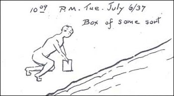 Although I am neither a believer nor disbeliever in remote viewing, one incident fascinates me. It is reported in an article in Popular Aviation magazine (see http://tighar.org/Projects/Earhart/Documents/Jennings_Article/Psychicsarticle.html ), and deals with a Detroit architect who was impelled to draw several pictures of ongoing events which involved Earhart after her disappearance. One such illustrations showed Earhart with a "box of some sort".