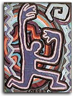 Coffey, in his late 40's, only recently discovered his painting talents. Originally a jewelry maker and leather worker, Coffey took some painting classes and felt something inside of him come "alive." Within one year, he painted over 200 canvases and started to create his unusual masks.