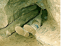 sign that humans have ever been here. This is every cavers dream--to be in virgin passage. As we continue, our lights expose stalactites hanging from the ceiling. We are the first people to ever gaze upon these sights.