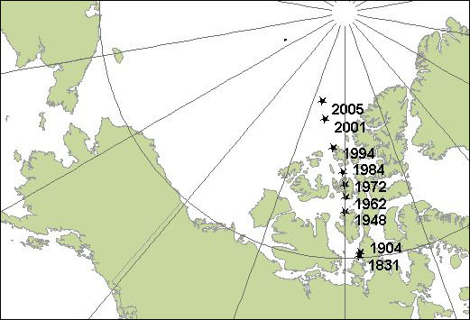 The magnetic north pole had moved little from the time scientists first located it in 1831. Then in 1904, the pole began shifting northeastward at a steady pace of about 9 miles (15 kilometers) a year.