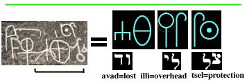 Notice the Lamed+Yod on the far left, arranged as an "arm," protecting "overhead."