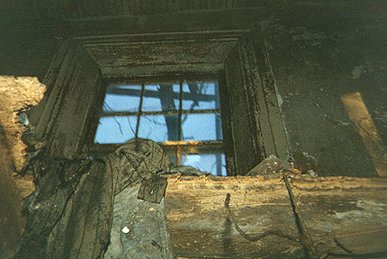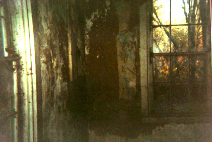 On another occasion, Randy and Bob decided to return to the house again. They began by going to the upper floor and looking down through the hole in the floor. Looking down, the lower level seemed darker and blacker than it could possibly have been. Absolutely no light shone anywhere on the lower level. Then, faint muffled sounds of voices were again heard, coming from below in the blackness. They began to make out faint shadows of people walking around. Randy got up, and Bob remained, watching.