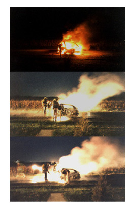 Over the next few years many people would become injured in the house and on, and even near the property. Included in these incidents was a fiery car crash (shown above), in which one of the car's occupants was killed. But Randy never suffered so much as a scratch in the near hundred times that he visited the house.