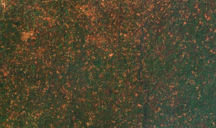 Areas of brown, dead vegetation can be clearly seen from satellite images of the devastated areas.