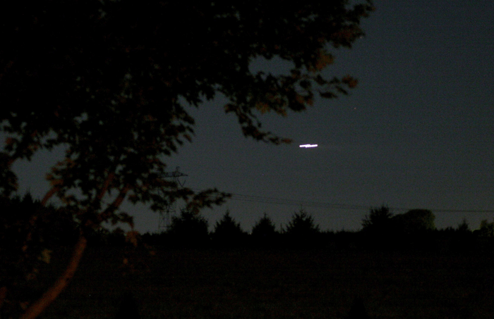 As it began moving west, it seemed to pivot on both the vertical and horizontal axis revealing more detail until it disappeared behind a tree line. I captured this object with my digital and the pictures came out surprisingly well. I use a Canon 20D-A which I use for astrophotography. I have transferred these images to a disc."