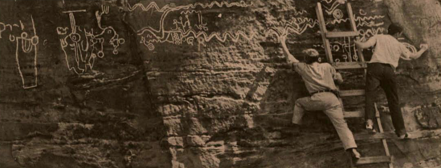 Purgatory River in the Oklahoma panhandle. The petroglyph was chalked by professor Weisendanger and his