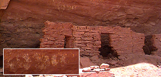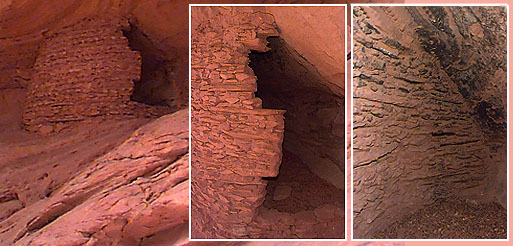 Amazingly, most of the remote dwellings in the Mystery Canyon area are still intact. This dwelling even had evidence of grain and was blackened inside by years of smoking fires. The door would have been covered by either an animal skin or by some plant fibers. Not all of these dwellings were used as a residence - some were specifically designed for the storage of corn, squash and other agriculture resources.