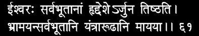 ![]() Man attains the highest perfection by worshipping through his own natural duties Him from whom the tide of creation has streamed forth and by whom all this universe is pervaded. (18. 46)