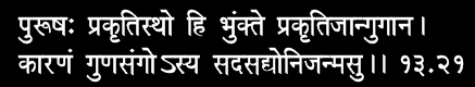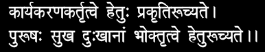 ![]() The Prakati -- nature is said to be responsible for bringing forth the evolutes and the instruments; while the individual soul is declared to be the cause of experience of joys and sorrows. -- 13. 20