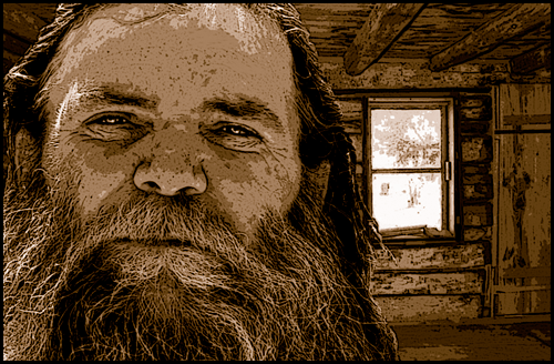 As told by Al. S for 'verbatim' I'm just a regular guy who likes camping out a lot. When I stay out there, all by myself most of the time, it feels like I can be my true self -- whatever that true self is. One sunny day, while I was walking through the bush with my backpack on, I saw a tall guy who was wearing only jeans and a T-shirt. I was miles from any civilization and very surprised to see him. He was collecting berries and didn't even notice me coming. I said "Hi!" to his back and he turned around. There was no surprise, no fear or suspicion in his sky-blue eyes. In fact he was already smiling like he was meeting an old friend. That puzzled me. One meets all kind of people on the trail -- not always the good kind either -- and the rule of the thumb is, 'Better safe than sorry'. But this guy didn't seem to care. The broad smile that broke out on his bearded, suntanned face left no doubt as to his identity. He sure was "one of ours". I asked him where he was camping and without any hesitation he led me into the thick forest. In the opening there stood a small log cabin.