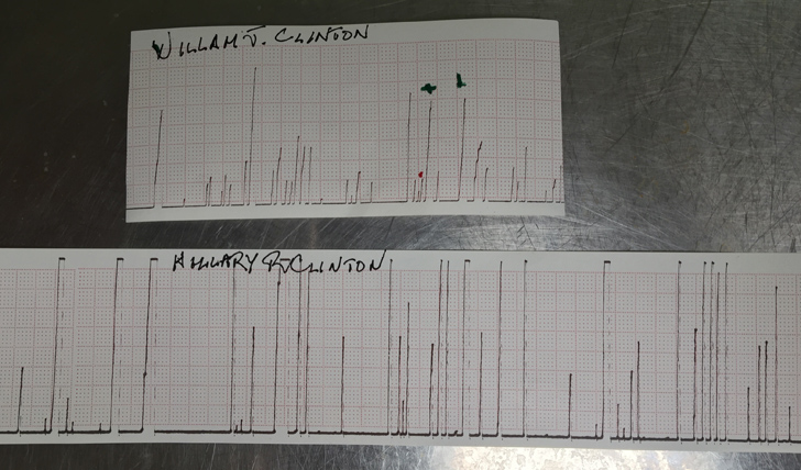 ![]() When George Zimmerman passed a lie detector exam after his encounter with Trayvon Martin, it was a voice stress analyzer which the Sanford Police Department employed. L. Howard Frank has more than 30 years experience using this instrument. In an election season where both candidates are accused of lying, viewzone asked Mr. Frank to examine statements coming from both candidates for their veracity. Our first report revolves around former Secretary of State Clinton's statements regarding her health after the events of the 9/11 Memorial incident. Here's Frank's report: First, I analyzed William Jefferson Clinton's unedited interview with Charlie Rose on Monday September 12, 2016, where he initially said that Mrs. Clinton "frequently" had health issues causing her to collapse, then changed his answer to "rarely." This allowed me the opportunity to contrast his answers. I have placed in brackets where I have determined that Mr. Clinton is being deceptive. Bill Clinton: "She's been, ah, well, if it is, it's a mystery to me and all of her doctors, cause frequently, well not frequently, rarely [false], but on more than one occasion [false] over the last many many years, the same sort of things happened to her when she's just got severely dehydrated." ![]() The red dot is when former President Clinton said, "frequently." Here, he was telling the truth. The first green mark is when he changed his answer to 'rarely." This was, in Mr. Clinton's mind, the indication of a lie. The same holds true for the second green mark where Mr. Clinton said, "more than one occasion." The level of stress in Mr. Clinton's voice tells me it was substantially more than one occasion. This next segment is from former Secretary of State Clinton, herself, when she spoke with Anderson Cooper over the phone on Monday, September 12, 2016. This is a somewhat more complex chart to analyze, so I have refrained from pointing out specifics. Again, I have placed in brackets my conclusions that Mrs. Clinton was not telling the truth. Hillary Clinton: "I'm feeling so much better [false] and obviously, I should have gotten some rest sooner. I probably would have been better [false] off if I'd just pulled down my schedule on Friday, but ah, like a lot of people, I just thought I could, ah, keep going forward [false] and power through it and obviously that didn't work out so well." Anderson Cooper: "Let me ask you, your husband said tonight in an interview with Charlie Rose, he said -- quote -- "rarely on more than one occasion over the last many many years, the same sort of things happened to her, meaning you, when she got severely dehydrated." Can you say how many times over the course of the last, say, five years you've been dehydrated and gotten dizzy? I know you passed out, hit your head back in 2012, which led to the concussion. How often has this happened?" Hillary Clinton: "Oh, I think really [false] only twice, ah, that I can recall. Um, you know, it is something that has, ah, occurred, ah, a few times [false] over the course of my life. And I'm aware of it and usually [false] can avoid it. Ah, what happened yesterday was that I just was incredibly committed to being at the memorial as a Senator on 9/11, this is incredibly personal to me. And I could, ah, feel how hot and humid [false] it was. I felt over-heated. I decided that I did need to leave. And as soon as I got into the air-conditioned van [false], I cooled off, I got some water [false] and very quickly, I felt better. I felt fine [false] , but, ah, I'm now taking my doctors advice[false], which was given to me on Friday that I ignored, ah, to just take some time to, ah, get over pneumonia completely." It is the position of this examiner, based upon William Jefferson Clinton's and Hillary Rodham Clinton's voice stress analysis charts, that there were significant emotional disturbances indicative of deception present when the subjects provided statements which lead me to conclude there was deceit.