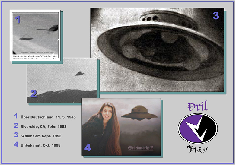 Hello Gary; I sent this photo montage to contacts pertaining to the Vril Gessellschaft/Society founded in Germany in the 1920's. It was an Esoteric Society that was equality for both men & women, and some famed Women then were literal Priestesses & more at that time... like our Beloved Maria Orsic. The Vril Society was inspired by Sir Edward Bulwer Lytton's 1800's novel, "The Coming Race" about an underground civilization that was highly advanced and used Vril Energy which is the Energy that underlies ALL this Universe and ALL Matter, Gary. In other times like in China & Asia it's called the "Qi/Chi/Ki," or in Europe, it was called "Animal Magnetism" by Franz Anton Mesmer, or the "Odic Energy" by Count Karl von Reichenbach, or the "Vril Energy" by Lytton, or "Orgone Energy" by Psychologist/Scientist Wilhelm Reich. Anyway, the Vril Society had very advanced thinkers & scientists there in it, & the Vril Society gave the 3rd Reich when it began in the 1930's, some very highly advanced Technology using Free-Energy based on the underlying Vril Energy that animates ALL Life in this Universe. So many alleged UFO's were actually manmade flying saucer craft by the Nazis they never fully developed... After WWII, the OSS/CIA later & the British MI6, took this technology to use & develop & the craft at the 40's Roswell incident was a Haunebu Vril type craft in actuality... As for the Vril Society, it went underground before WWII seeing they were betrayed & what technology they gave to the Nazis was being abused & the corruption going on; and they saw great dangers ahead & fled Germany & disappeared. Today we are in Bavaria & Italy today, Gary. I am a Vril Society Member/Initiate... it's not what many Researchers in the Esoteric & Nazis & manmade UFO's think... the Vril Society were not the Bad Guys among the Nazis as to the Occult/Esoteric connection... that business was the Anhenerbe, the SS & the Thule Society in Reality as to Occult Nazism... and yeah, they were into the Dark Side of the Force as it were... Anyway, the Vril Society survived & lives still in time... I apologize for sending You this if it caused any offense to You, Gary. Admiral Canaris who was one who was part of the 1944 plot in Nazi Germany to stop Hitler was a Vril Society Member & Plaz was the getting escape to the Antarctica of the highest Technology so the Allies & the evil hidden corruption there could not steal it... but the Intelligences of the OSS-CIA & MI6 got some Nazi Technology & imported many bad Nazi Scientists like Reinhard Gehlen who was a Head of the CIA(!) and Werner Von Braun for NASA, & Joseph Mengele for MK-Ultra via Project Paperclip after WWII, via the Vatican on fraud Passports... the Conspiracy is Reality my Friend more than most people even realize... Anyway, this was sent today in loving Memory of Vril Women, Maria Orsic & Sigrum & Traute in the 20's/30's/40's/to Post-WWII for a time... today is a very old North European Holiday called Walpurgis Nacht in Germany. Take Care Gary. Hope this helps... below are pics of Vril Craft & the Vril symbol dating to the 1920's. Take Care... Be Good to YOU~ RR