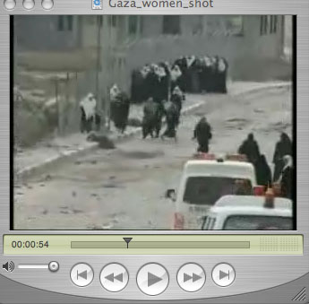 The Israelis told citizens of Beit Hanoun that all males from fourteen to forty five had to report to the town stadium. We were then told that the Jews were executing them. Jews were using the Mosque as a holding area for the teenage boys -- our sons and brothers. When all us mothers showed up to ask please for our children back, an Israeli tank shot at us. The Israelis shot at least twelve mothers. Later they shot at teenagers.